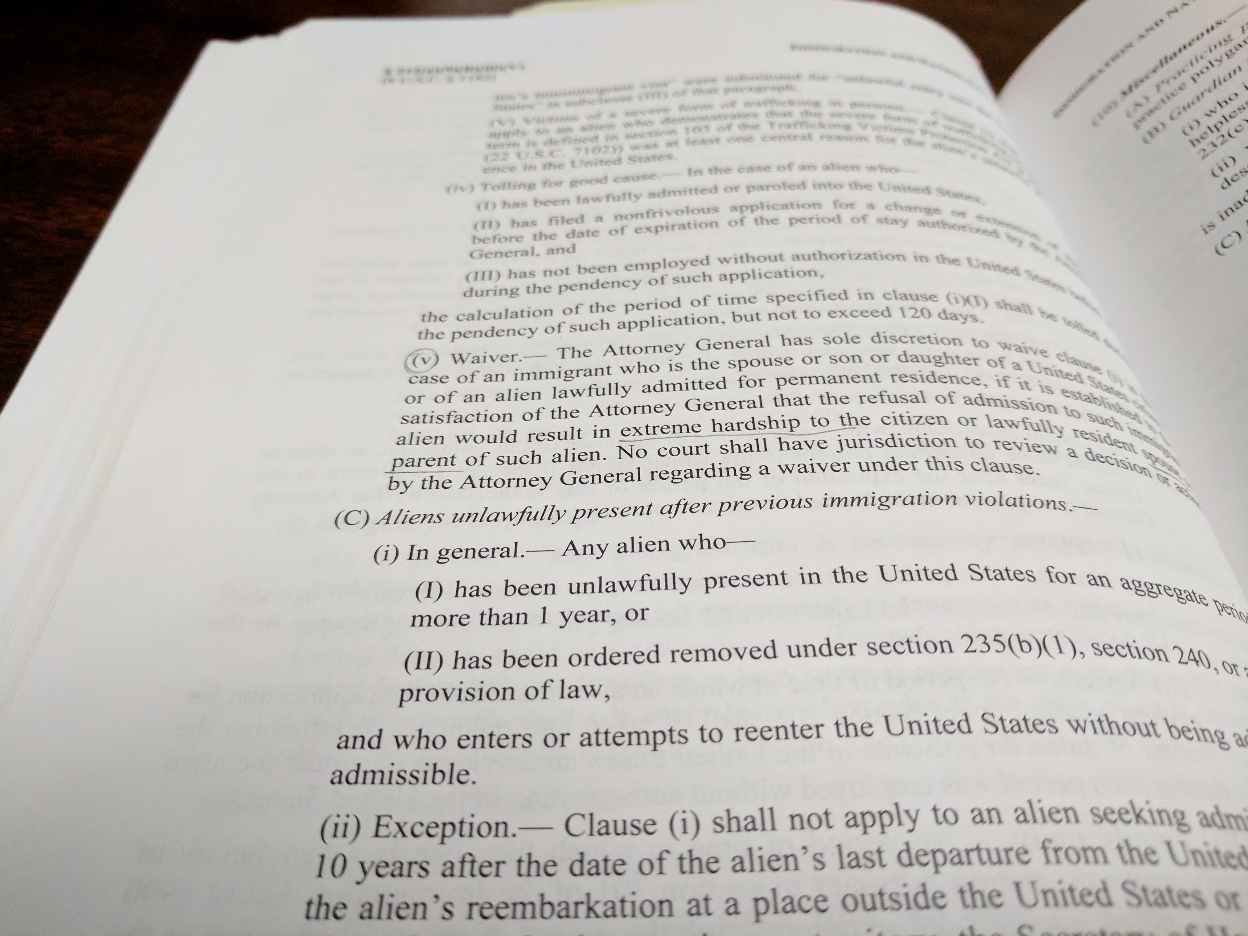 If the individual has been present in the United States for one year or more, they will receive the ten-year bar. Similar to the three-year bar, the unlawful presence must be continuous and uninterrupted.